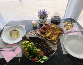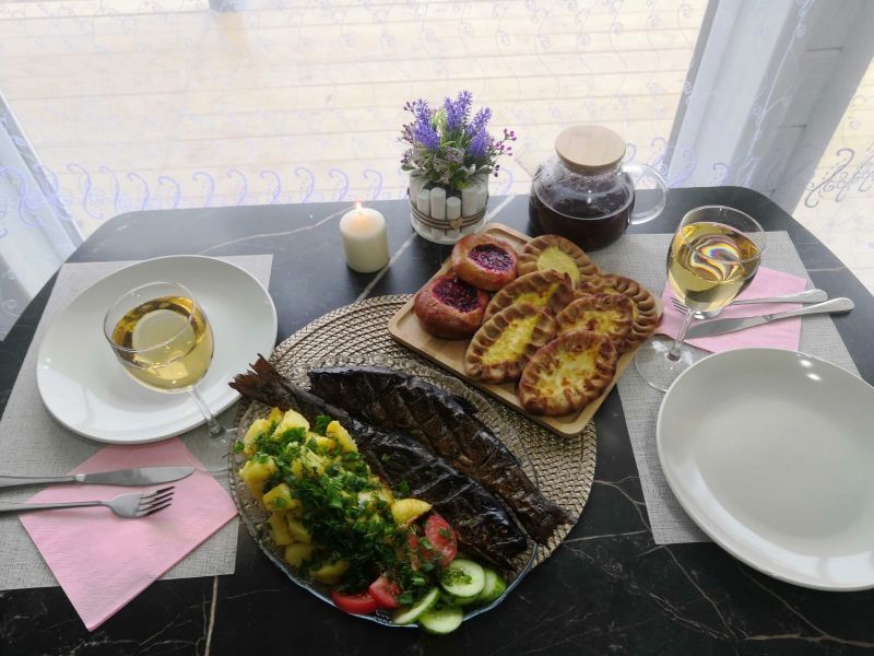 На территории дома предусмотрен мангал и коптильня, чтобы гости могли насладиться копченой форелью, которая считается фирменным блюдом Карелии. Шампуры и дрова для углей предоставляются. Для детей предусмотрен большой батут, где они могут весело проводить время.