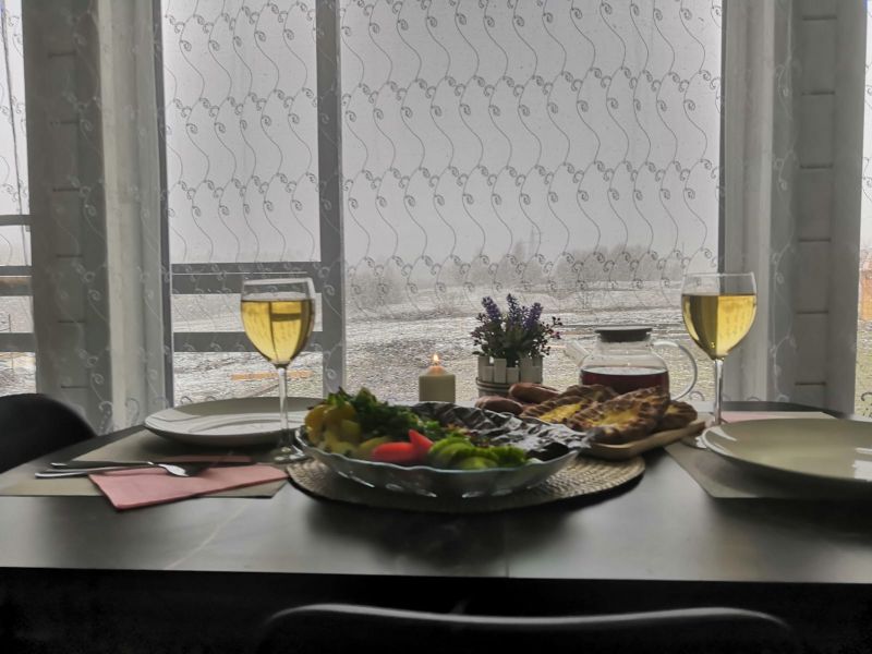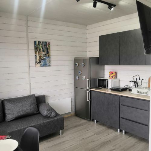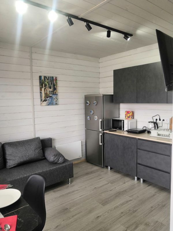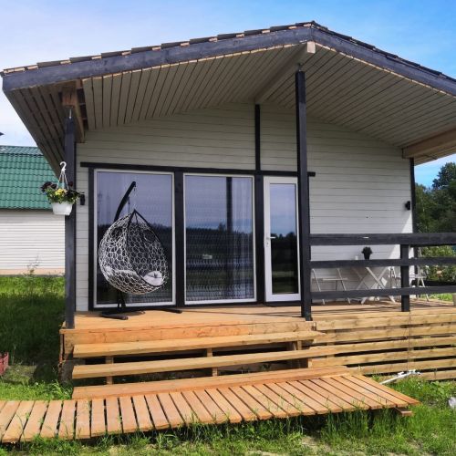 В уютном доме, расположенном в живописном месте, гости смогут отдохнуть и зарядиться энергией. Из панорамных окон открывается потрясающий вид, а просторная веранда с садовой мебелью и уютный интерьер создадут идеальную атмосферу для отдыха. В доме есть спальня с двуспальной кроватью, кухня-гостиная с диваном, который также служит спальным местом, ванная комната с душевой кабиной, туалетом, стиральной машиной, раковиной и зеркалом. Кухня полностью оборудована всем необходимым: варочной панелью, электрочайником, морозильной камерой и микроволновой печью.