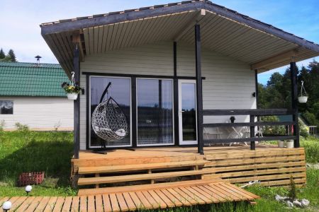 Самолетом до аэропорта г. Петрозаводск, далее на автобусе №100/117А двигаться до остановки «Автовокзал Петрозаводск», далее на автобусе №532 до остановки «Леппясилта», далее 1,36 км до коттеджа.